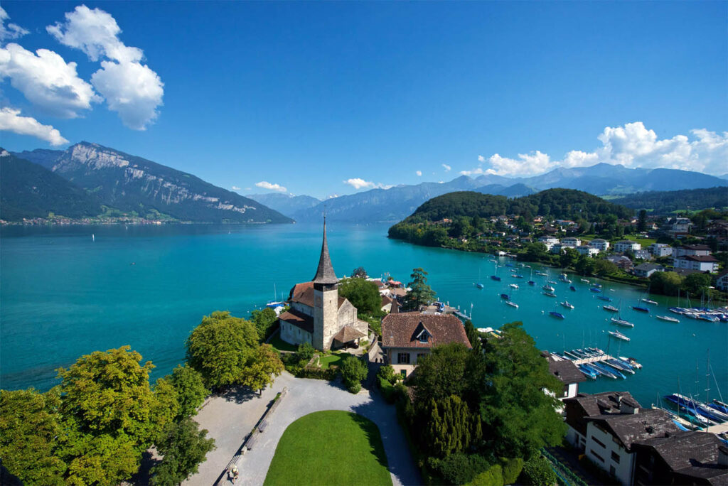 Proudly dominating the shores of Lake Thun for over a thousand years, Spiez Castle is one of Switzerland's oldest and most fascinating castles. Built in the 11th century by the barons of Strättligen, and remodeled several times over the centuries, today it gracefully blends Romanesque, Gothic and Baroque styles. A true cultural and architectural gem, the castle also houses a rich and lively museum, a contemporary art exhibition that is renewed every year, and a charming café overlooking the vineyards and lake, perfect for a gourmet break in an idyllic setting.