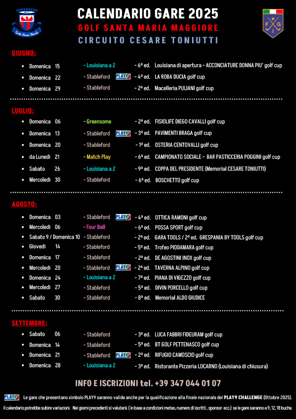 Grazie a una gestione dinamica, il club è cresciuto notevolmente, sia in termini di qualità del campo che di organizzazione di competizioni. Un ricco calendario di tornei, adatti a tutti i livelli, viene proposto durante tutta la stagione. Grandi offerte, sia per il green fee che per i prossimi tornei, attendono i nostri soci, un'opportunità da non perdere se vuoi approfittare di questa esperienza unica.