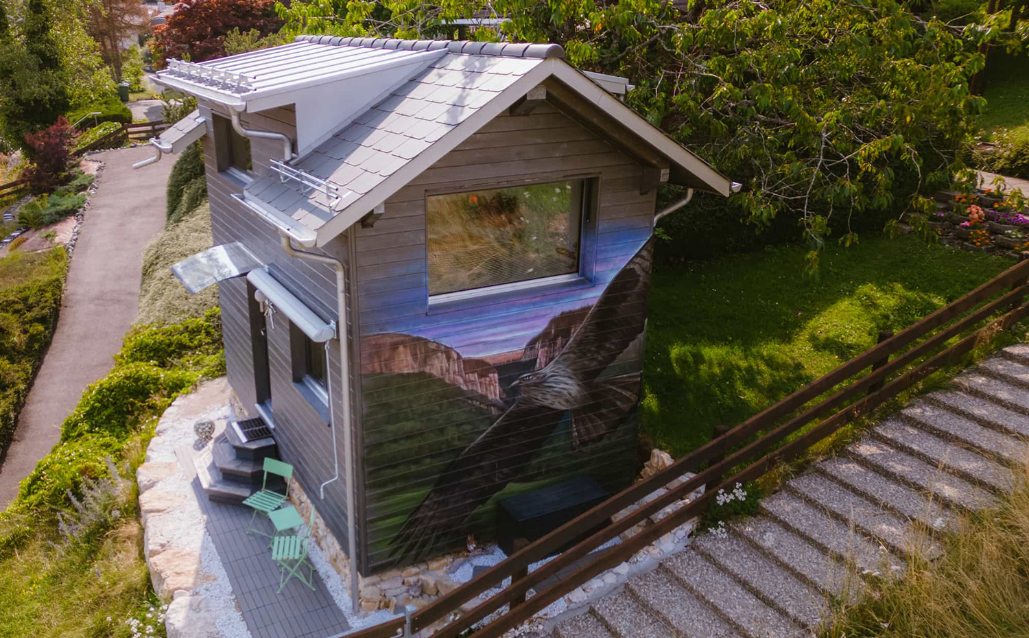 Découvrez l’incroyable Tiny House de l'Aigle, située dans le Jura bernois, à Villeret. Ce logement atypique propose un confort exceptionnel et comprend une belle chambre, deux salons, une cuisine entièrement équipée ainsi qu’une salle de bains avec cabine de douche.